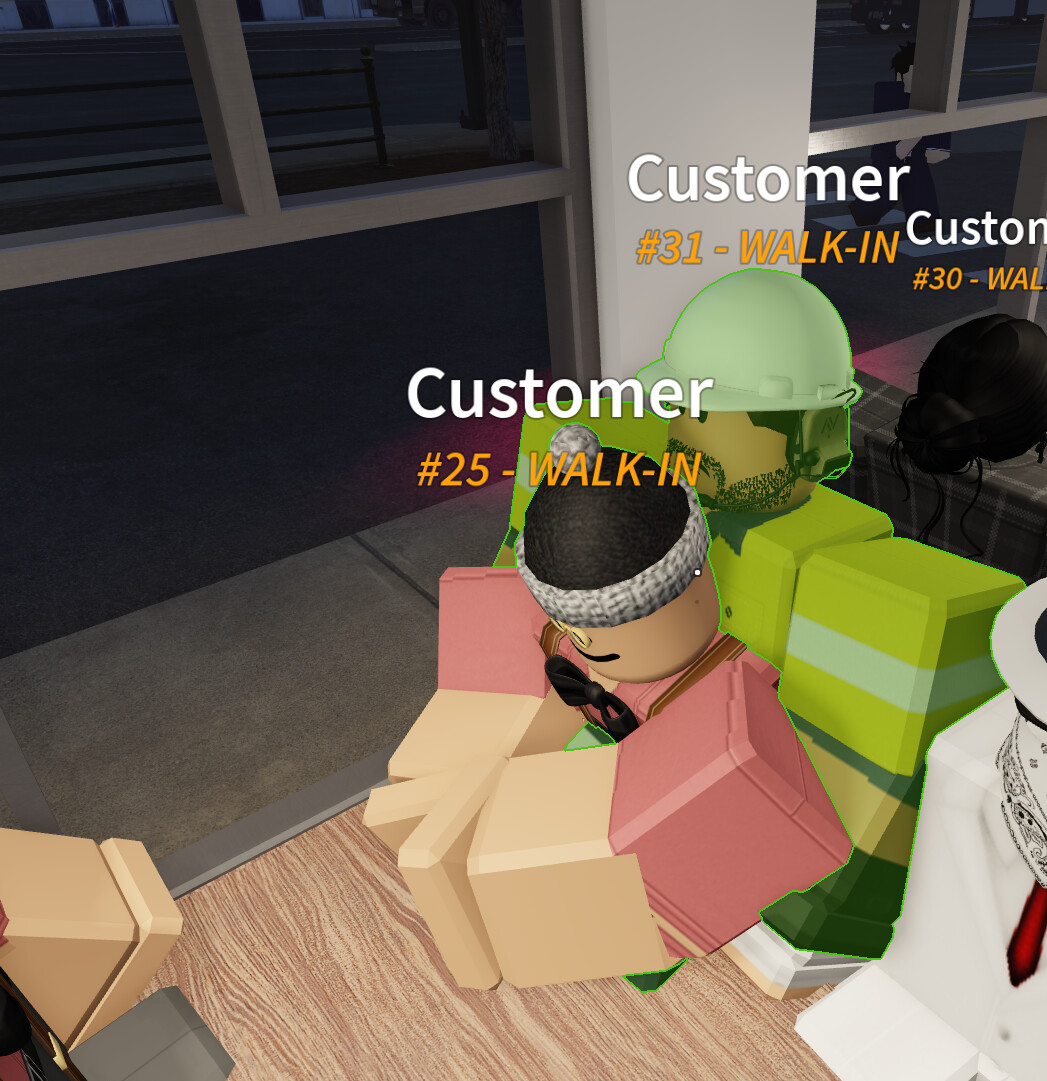 When all the seats are taken, the customers just sit inside of eachother which makes it hard to give just 1 person the food. - Have happened multiple times where I accidentaly clicked the wrong person.